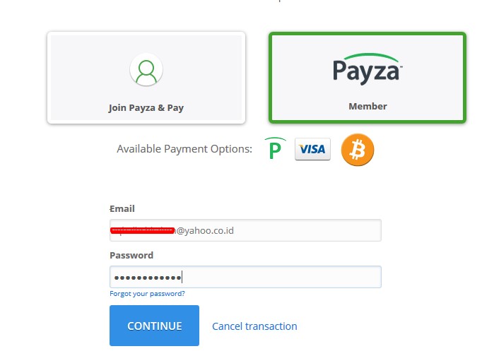 10. Jika anda belum memiliki akun payza, pilih nomor 1, jika sudah punya, pilih nomor 2.